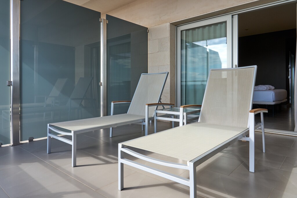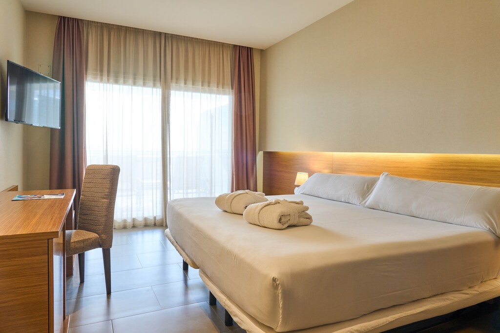 Habitación muy luminosa con amplia terraza con vistas al Parque Natural de las Salinas de San Pedro y una cama de 200cm x 200cm. Cuarto de baño completo con ducha, además de televisión y minibar con agua de cortesía. Ideal para descansar tras un día de relax en las piscinas termales y disfrutar de unas vistas privilegiadas.